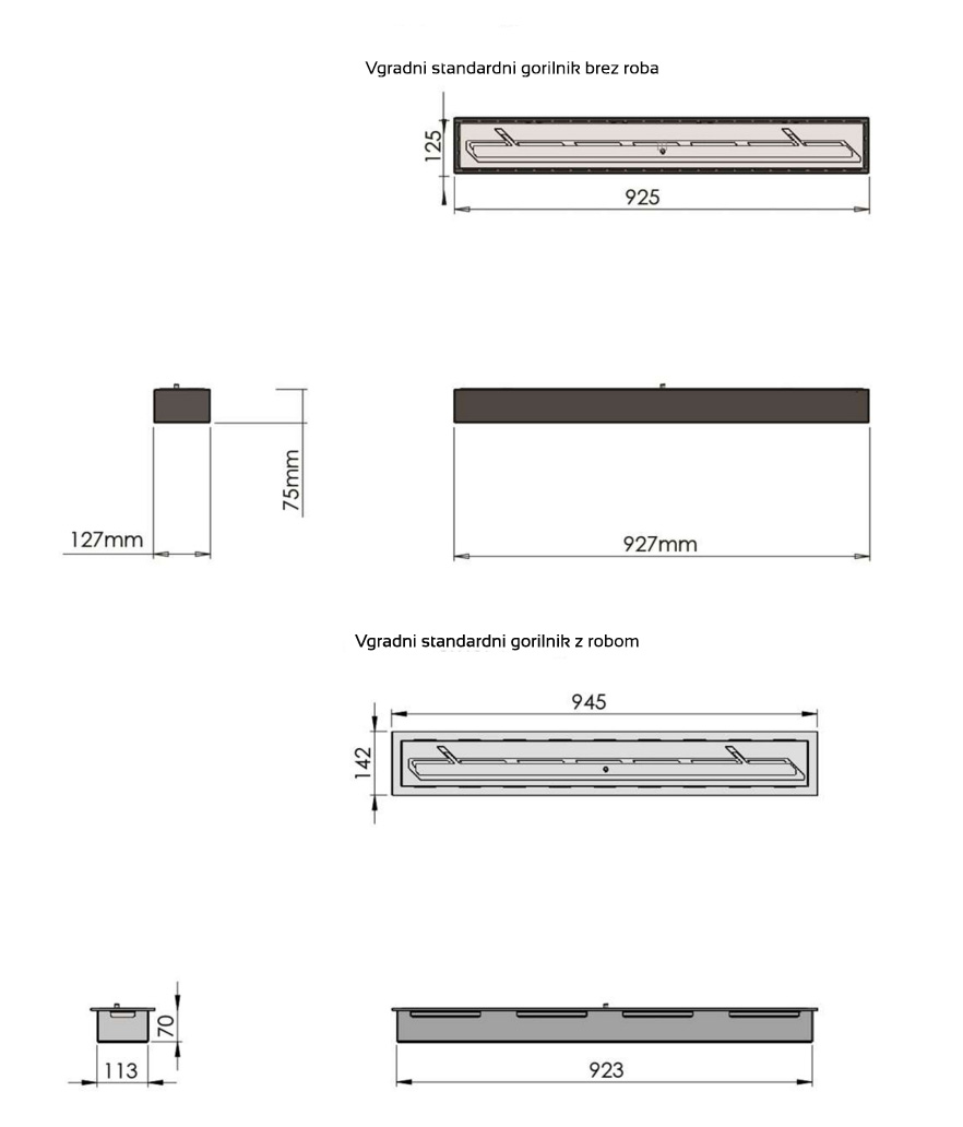 Standardni gorilnik je namenjen uporabi v zaprtih prostorih, možna pa je vgradnja na različne načine. Pri modelu z robom lahko dodatno izberete stekleno zaščito, da plamen ohranja stabilen. Za uporabo zunaj priporočamo gorilnik, ki je posebej prilagojen zunanjih razmeram.