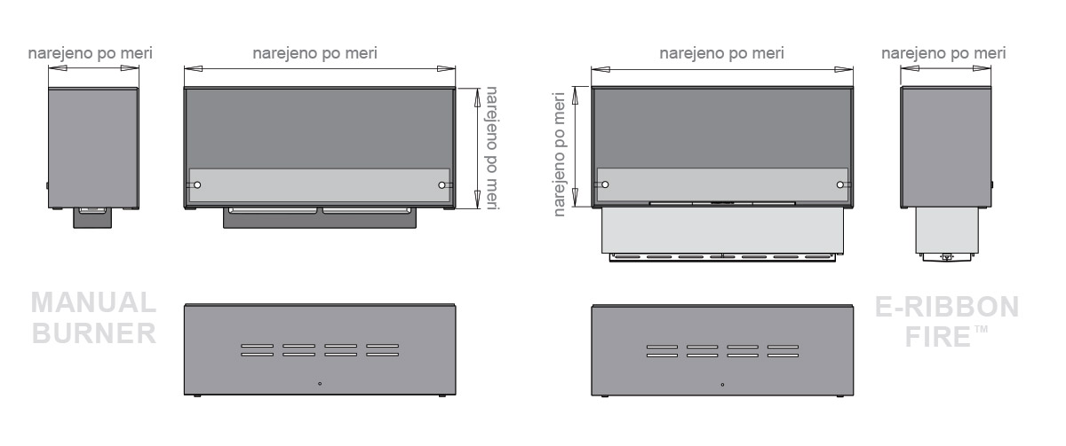 Bioetanolski kamin Montreal se lahko izdela v različnih variacijah. Standardne dimenzije kamina: